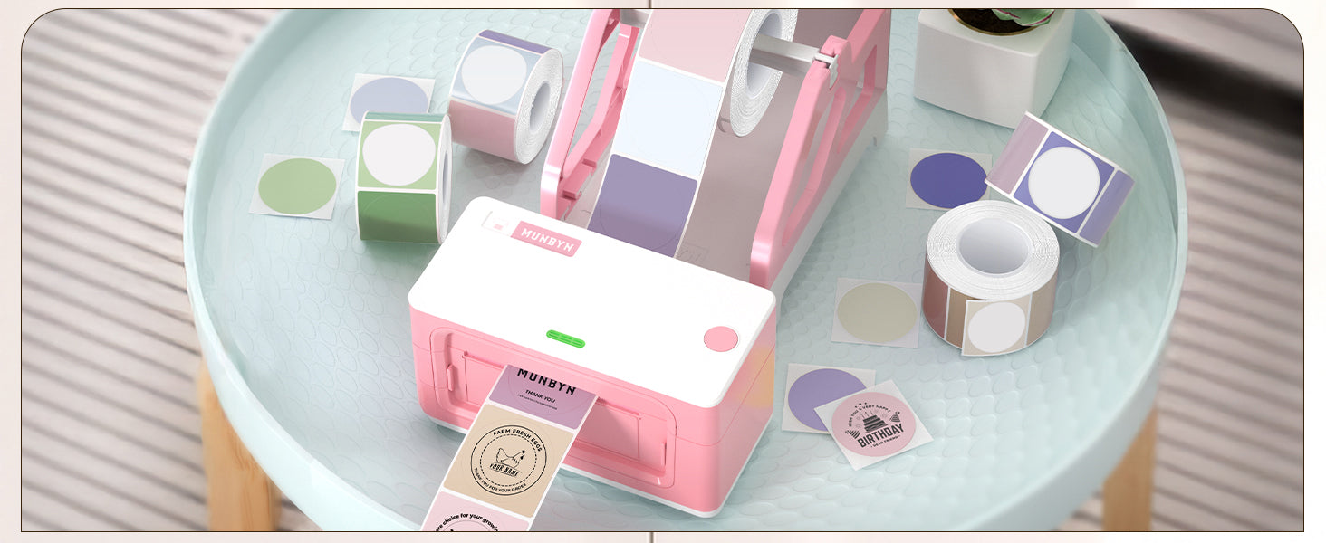 Einfaches Bestandsmanagement: MUNBYN FM226-Etiketten mit 5 Farben auf einer Rolle, 150 Etiketten/Rolle, Sie müssen nicht mehr mehrere Rollen einfarbiger Thermoaufkleber aufbewahren, eine Rolle Aufkleber kann eine Vielzahl von Effekten drucken.