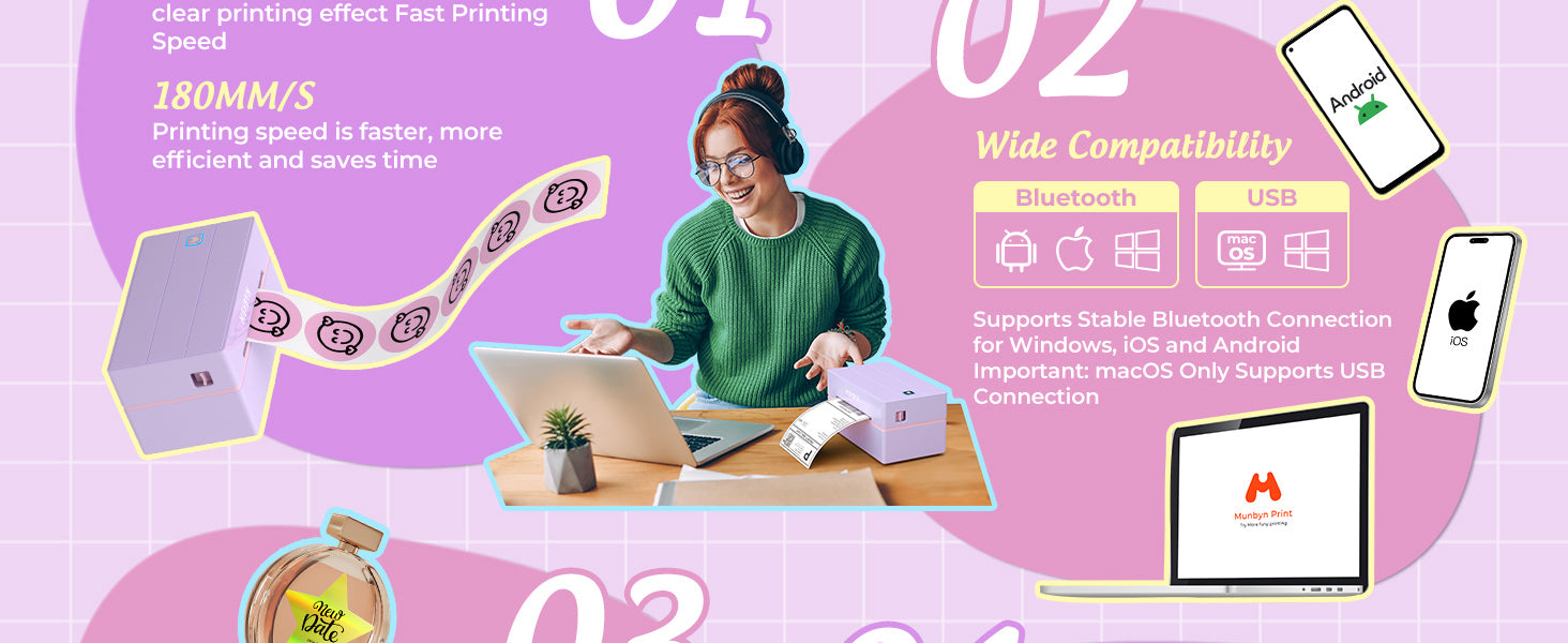 Mit der MUNBYN-App und unseren DIY-EcoLabels ist das Erstellen eigener Aufkleber so einfach wie nie zuvor. Wählen Sie aus über 3.500 Elementen und über 2.000 Vorlagen, um individuelle Etiketten, Logos und Aufkleber zu gestalten, die Ihre Verpackungen im Handumdrehen aufwerten.